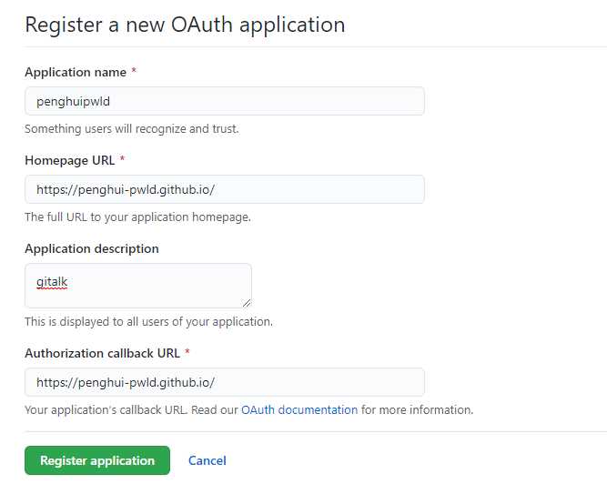 gitalk需要一个github Application,网址:https://github.com/settings/applications/new